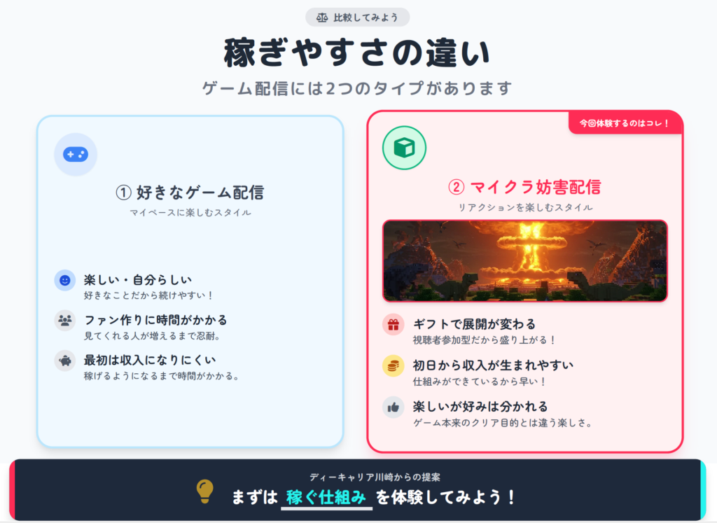 2. 「稼ぐ仕組み」から体験できる